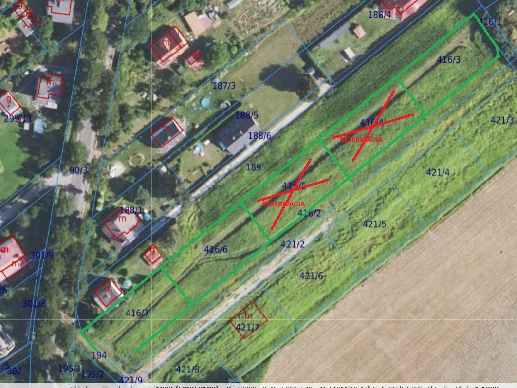 Wymiary: ok. 21 m x 43 m (kształt prostokąta - idealny pod dom jednorodzinny)